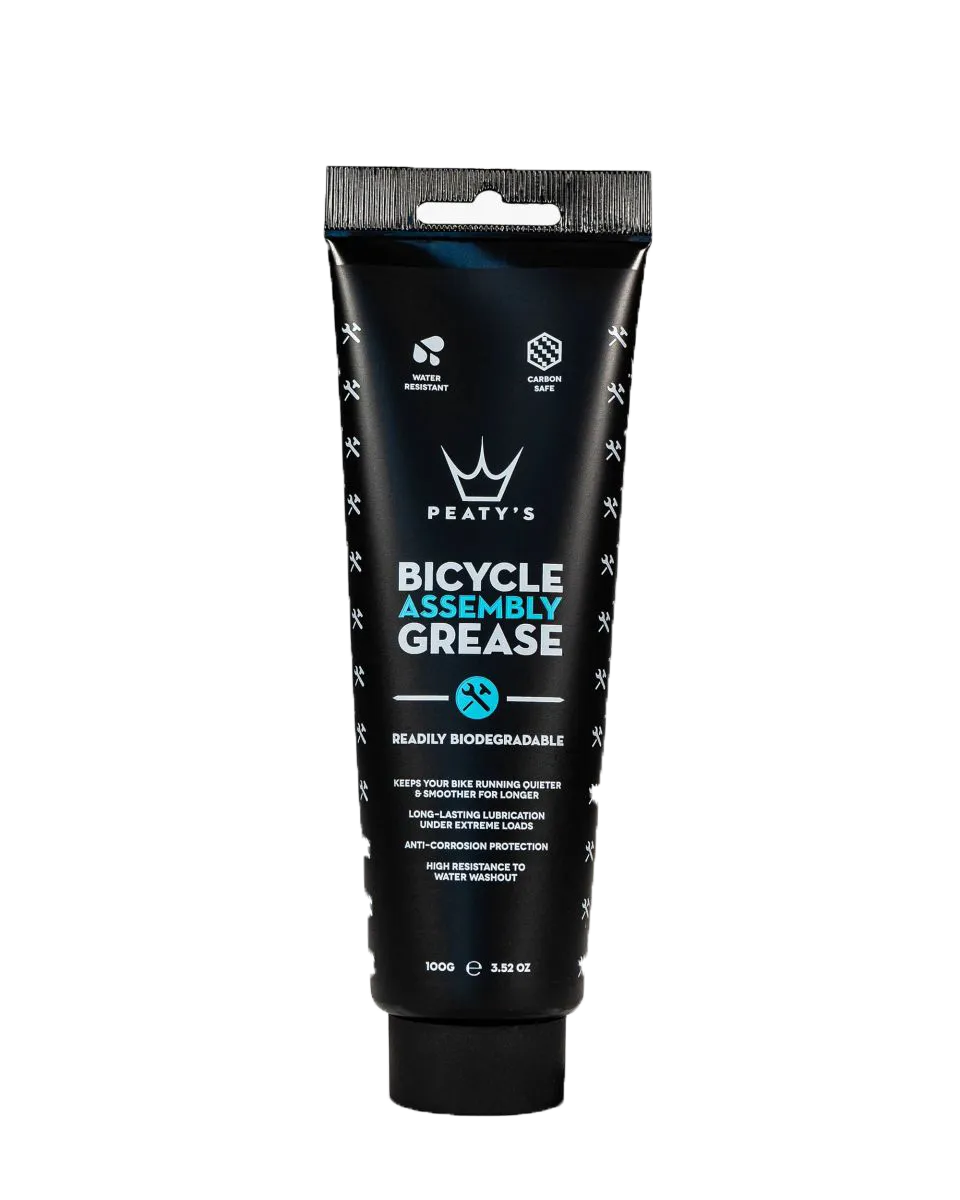 Peaty’s Assembly Grease využívá nejnovější generace základních olejů a aditiv, čímž zajišťuje dlouhodobý výkon s velmi nízkou hladinou tření i při extrémních tlacích. Tato vazelína vykazuje vysokou odolnost proti vymývání vodou, vynikající antikorozní vlastnosti a přilnavost ke kovovým částem a zároveň je slučitelná i s většinou ostatních běžně používaných maziv. Plná biologická rozložitelnost vazelíny Assembly Grease byla oficiálně prokázána prostřednictvím testu OECD 301B.