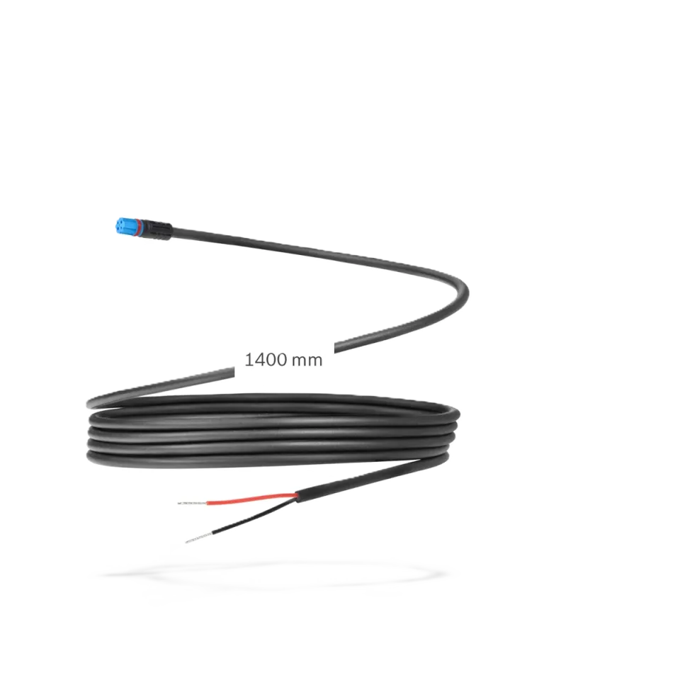 Tento originální světelný kabel Bosch je určen pro připojení předního nebo zadního osvětlení k systému Bosch eBike. S délkou 1 400 mm je vhodný pro elektrokola s delším rámem, interním vedením kabeláže nebo při dovybavení světelnou sadou.