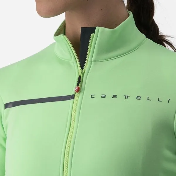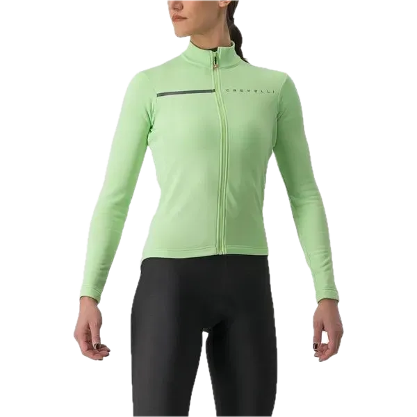 Castelli dámský dres Sinergia 2 v barvě Paradise Mint/Rover Green je navržen pro cyklistky, které hledají ideální kombinaci pohodlí, funkčnosti a stylu. Vyroben z jemného, teplého a pružného materiálu Warmer s počesaným fleecem z vnitřní strany, zajišťuje příjemný tepelný komfort při jízdě v chladnějších dnech.