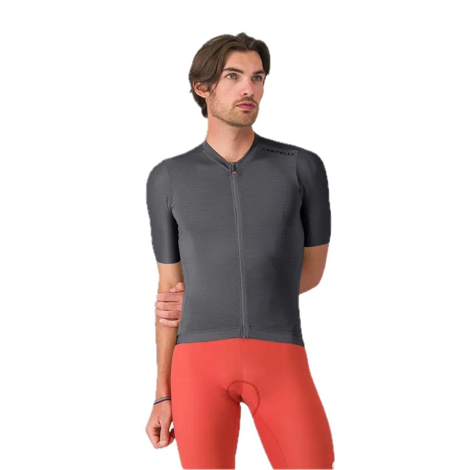 Tkanina Air_O Stretch: Vyvinuta exkluzivně pro Castelli. Nabízí výjimečnou pružnost ve všech směrech, což umožňuje dresu perfektně kopírovat postavu bez nepříjemného pnutí v oblasti ramen a hrudníku.