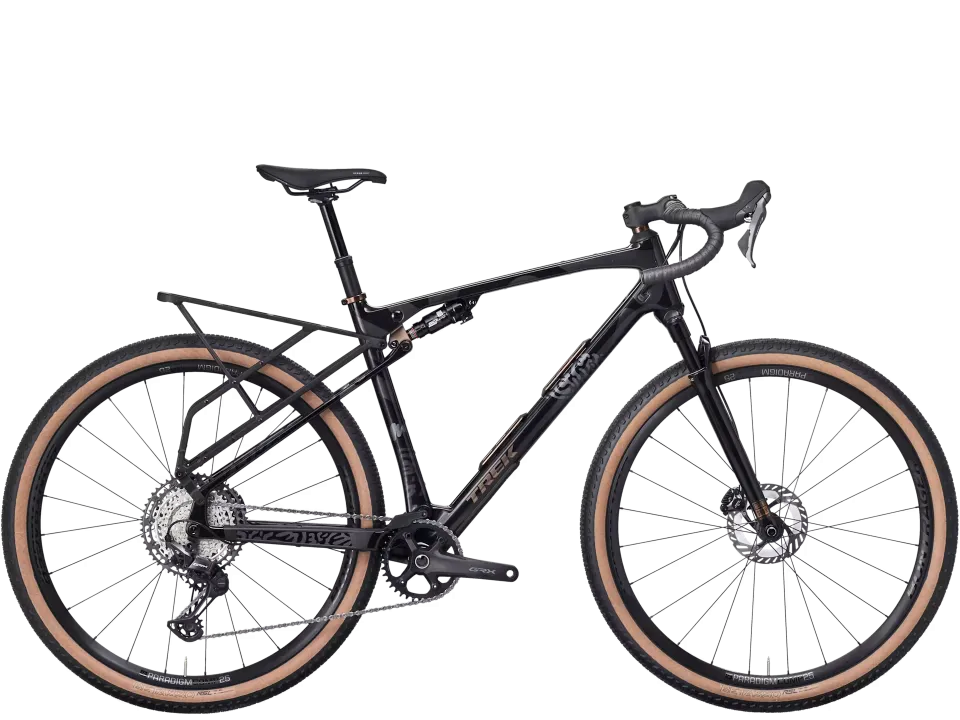 CheckOUT SL 5 je celoodpružený gravel, na kterém se můžete vydat i do těch nejodlehlejších oblastí. Karbonový rám, tlumič RockShox SIDluxe IsoStrut se zdvihem 55 mm a přední vidlice RockShox Rudy XL se zdvihem 60 mm vyhladí i náročný terén. Tento stroj jsme dále vybavili koly Bontrager Paradigm Comp, 12rychlostní sadou Shimano GRX a teleskopickou sedlovkou TranzX.