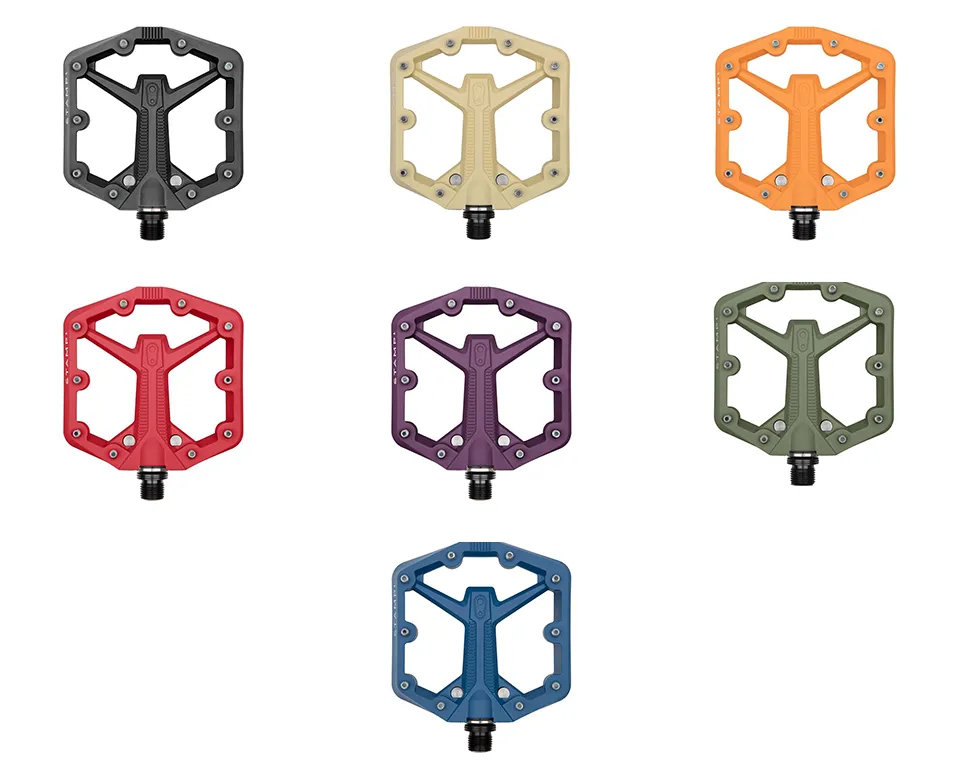 Použití: trail/enduro/freeride/DH/elektrokola/sport/commuting Tenký, konkávní profil - výška těla pedálu 13,5 mm až 15,5 mm Hmotnost 321g Tělo platformy: 100 x100 mm (boty 35 až 43,5), výška 13,5-15,5mm Platforma: nylon kompozitová Osa: kovaná Cr-Mo ocel Vnitřní ložisko: Igus LL kluzné pouzdro Vnější ložisko: Igus LL kluzné pouzdro Nové jednodílné vyměnitelné piny, 10 kusů na pedál (výška vnitřních pinů 23mm, výška vnějších pinů 25mm) Vylepšená, plně servisovatelná ložiska a systém těsnění IGUS Stamp Small doporučeno pro velikosti bot: 3-10 (US M) // 37-43,5 (EU) Stamp Large doporučeno pro velikosti bot: 10-15 (US M) // 43,5-49 (EU)