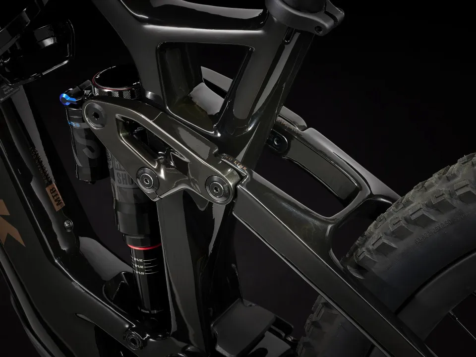 Karbon OCLV pro horská kola, vyjímatelná baterie, vnitřní vedení lanek, slitinou kolébkový spoj, 34,9mm sedlová trubka, úchyt na horní vodítko řetězu, 55mm řetězová linka, Mino Link, ABP, Boost148, UDH, 140mm zdvih