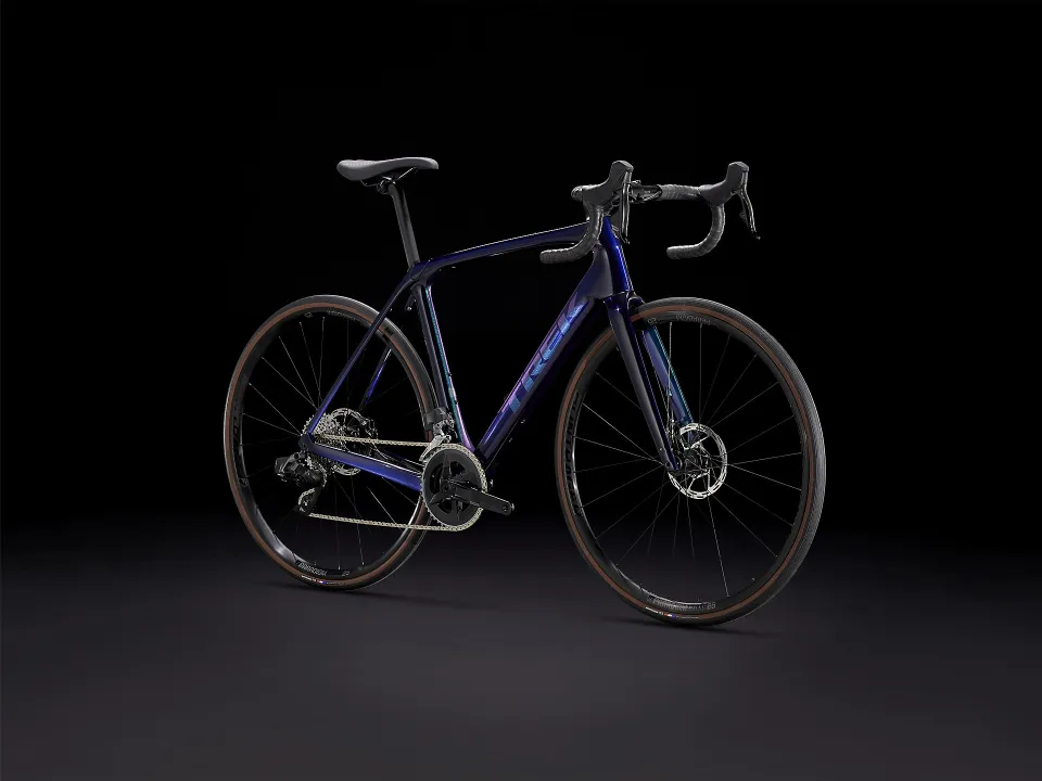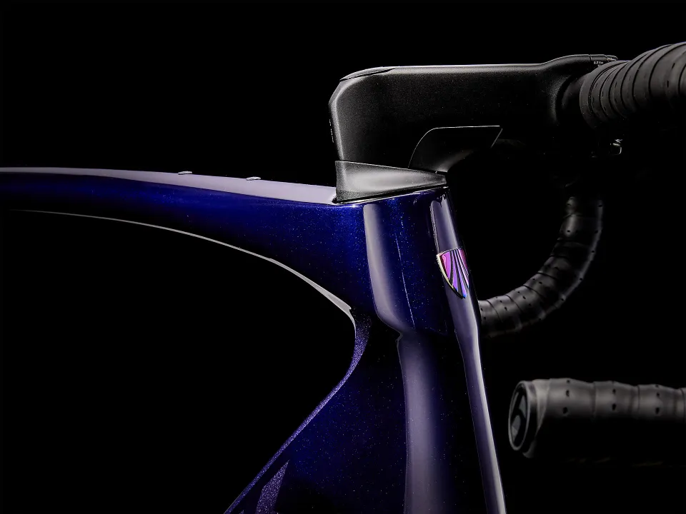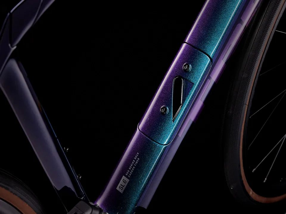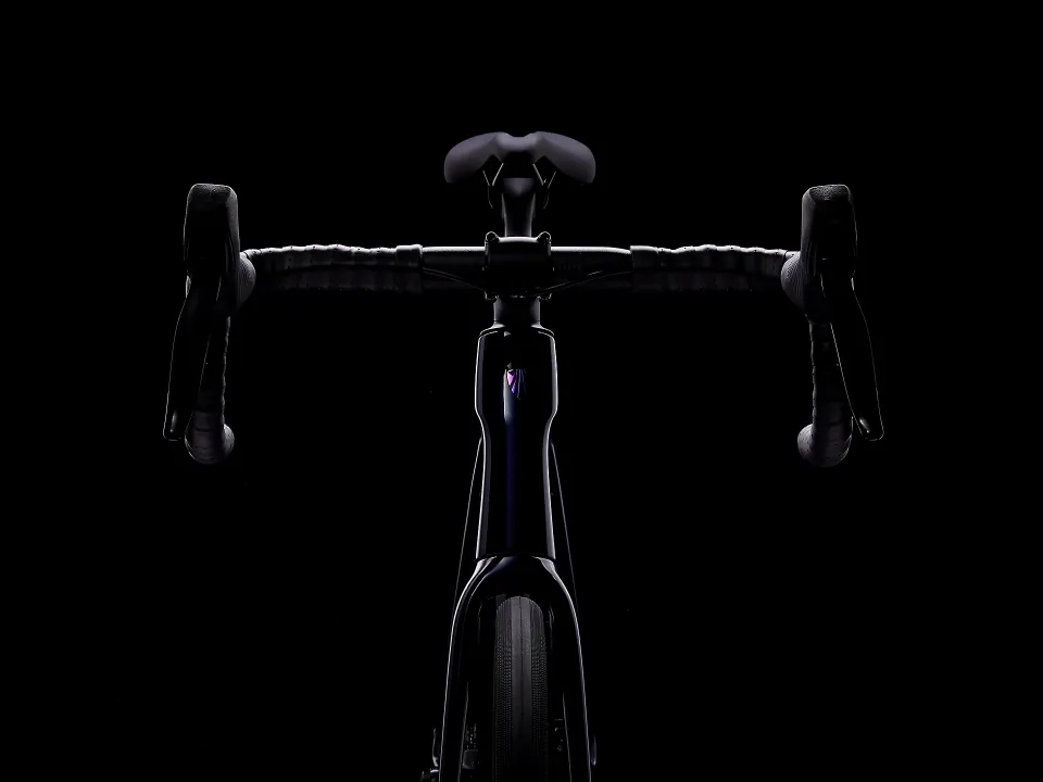 Domane SL karbon, kónický karbonový sloupek, vnitřní vedení brzdových lanek, úchyty na blatníky, kotouč s úchytem Flat Mount, pevná osa 12 x 100 mm