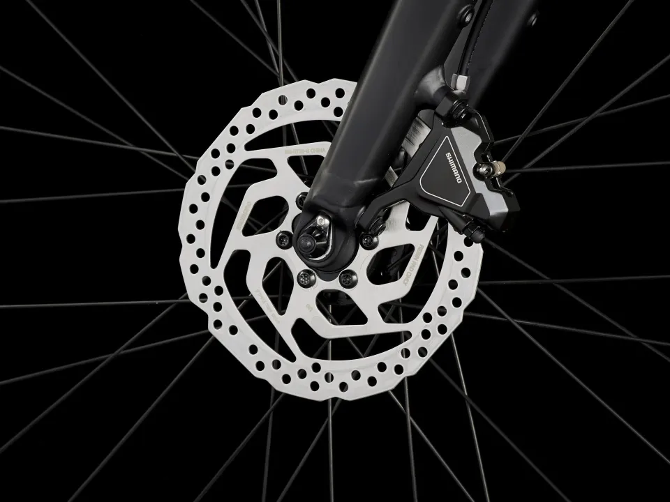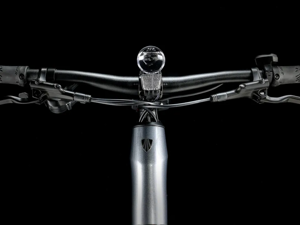Lehký hliníkový rám a vidlice, patentovaný systém podpory šlapání Trek od značky Hyena s motorem v náboji (250 W, 40 Nm), který poskytuje podporu až do rychlosti 25 km/h, a 250Wh baterie pro dojezd až 55 kilometrů na jedno nabití. Tuhá kola 650b, široké pláště 50c pro výkon a pohodlí na různých površích, spolehlivý 8rychlostní pohon Shimano, hydraulické kotoučové brzdy, integrovaná světla napájená z baterie a stojánek.