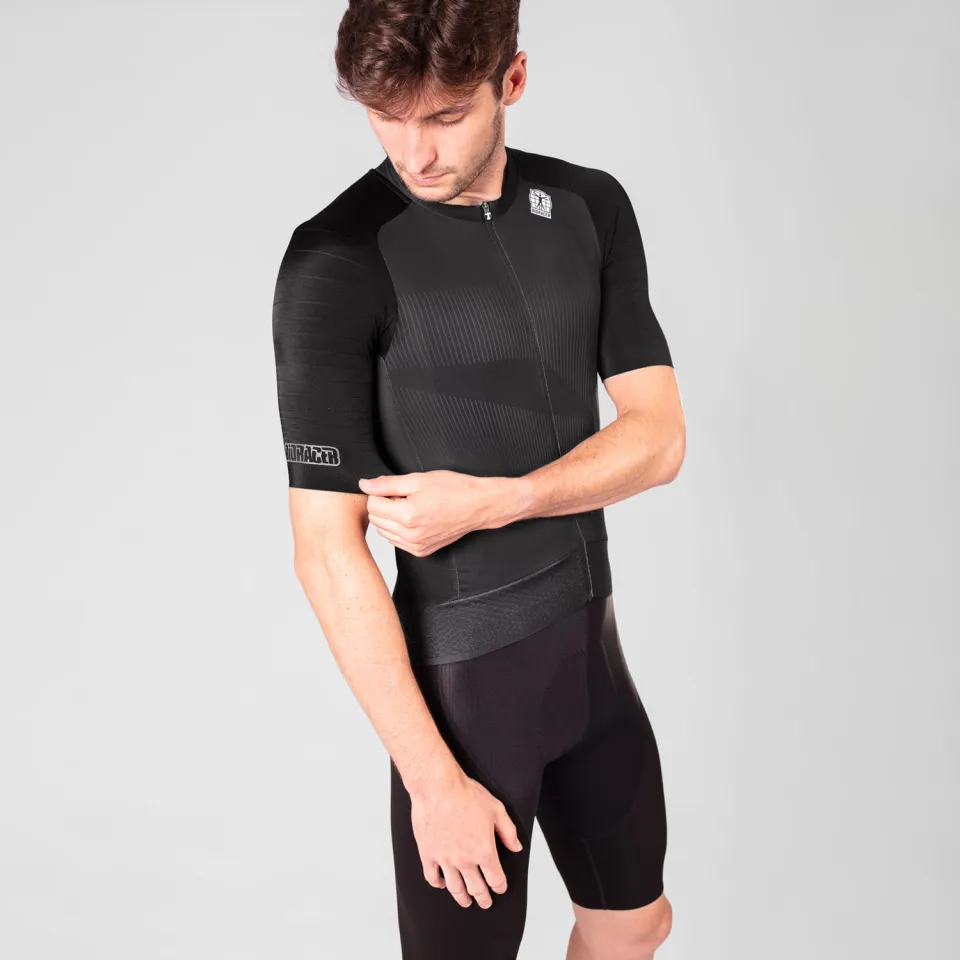 Podrobné údaje o výrobku - Přizpůsobení závodní pozice – Pomáhá Vašemu tělu udržet si aerodynamičtější pozici v sedle. - Postupná komprese – Zlepšuje krevní oběh, což Vám pomůže snížit únavu svalů. - Čistě střižené rukávy – Hladce se přizpůsobí Vaší pokožce, aniž by se krčily, pro pohodlný a elegantní pocit. - 3 zadní kapsy – Ideální místo pro uložení a snadné uchopení tyčinek a energetických gelů na cestách. - Síťovaný powerband – Udrží Váš dres na místě.