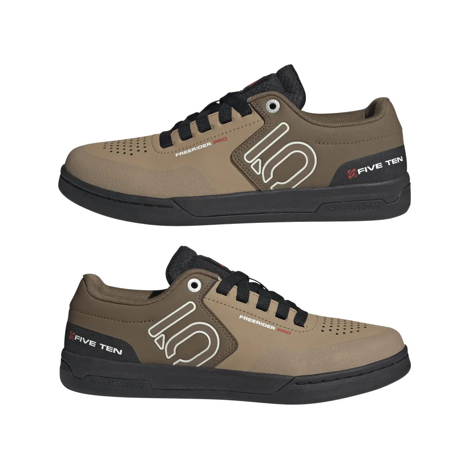Bota Freerider PRO vychází z klasického modelu Freerider. Zásadním rozdílem je užití syntetické kůže a vyztužení podešve. Boty jsou výrazně tužší a není to na normální chůzi, čistě bota na bike. Freerider PRO je nejlehčím bikovým modelem od FIVE TEN! Rozdíl je ve vyšší ochraně prstů a paty, celkově je bota užší, pokud si myslíte, že máte vysoký nárt, tak je doporučujeme nejdřív zkusit.