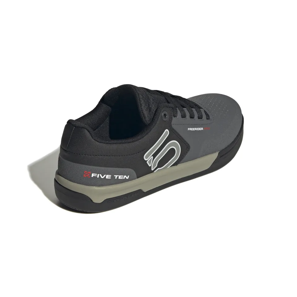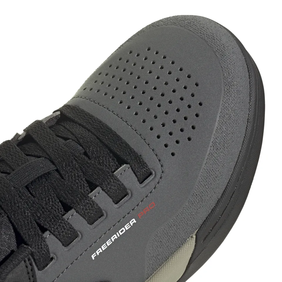 Bota Freerider PRO vychází z klasického modelu Freerider. Zásadním rozdílem je užití syntetické kůže a vyztužení podešve. Boty jsou výrazně tužší a není to na normální chůzi, čistě bota na bike. Freerider PRO je nejlehčím bikovým modelem od FIVE TEN! Rozdíl je ve vyšší ochraně prstů a paty, celkově je bota užší, pokud si myslíte, že máte vysoký nárt, tak je doporučujeme nejdřív zkusit.