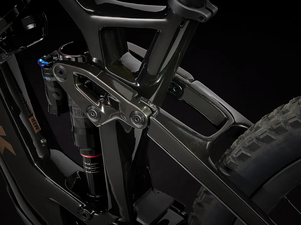 Karbon OCLV pro horská kola, vyjímatelná baterie, vnitřní vedení lanek, slitinou kolébkový spoj, 34,9mm sedlová trubka, úchyt na horní vodítko řetězu, 55mm řetězová linka, Mino Link, ABP, Boost148, UDH, 140mm zdvih