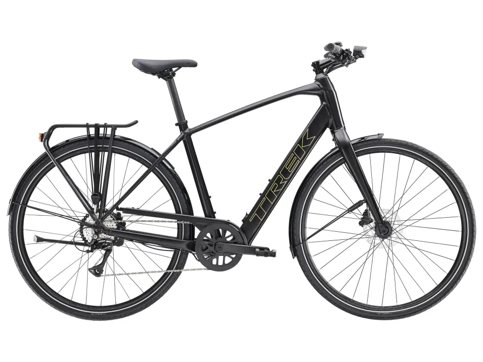 Lehký hliníkový rám a vidlice, patentovaný systém podpory šlapání Trek od značky Hyena s motorem v náboji (250 W, 40 Nm), který poskytuje podporu až do rychlosti 25 km/h, a 250Wh baterie pro dojezd až 55 kilometrů na jedno nabití. Navíc rychlá kola 700c, rychlé a přitom stabilní pláště 40c s reflexními bočnicemi, spolehlivý 8rychlostní pohon Shimano, hydraulické kotoučové brzdy, integrovaná světla napájená z baterie, zadní nosič kompatibilní se systémem MIK, blatníky a stojánek.