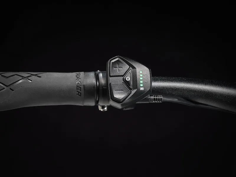 2) Systém podpory šlapání má motor v náboji pro přirozenější pocit z jízdy a jednoduché dálkové ovládání LED zobrazující zvolený režim podpory.