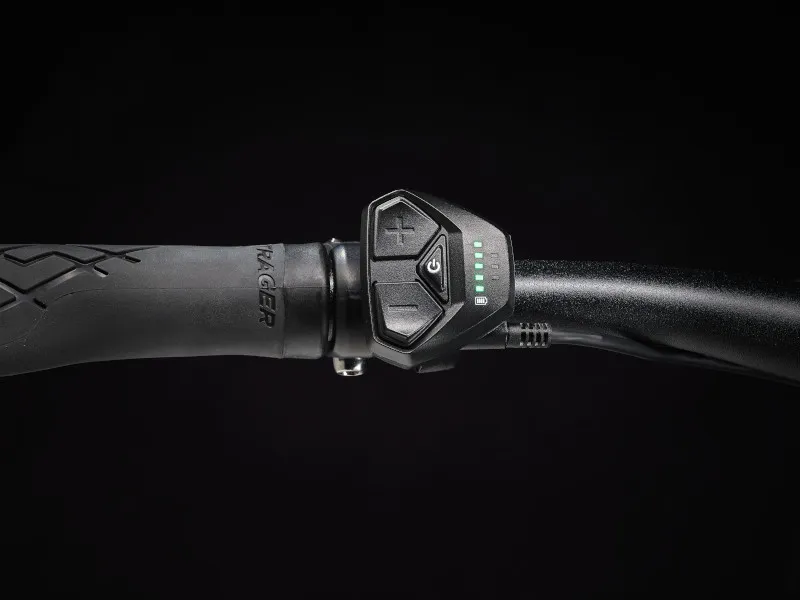 2) Systém podpory šlapání má motor v náboji pro přirozenější pocit z jízdy a jednoduché dálkové ovládání LED zobrazující zvolený režim podpory.