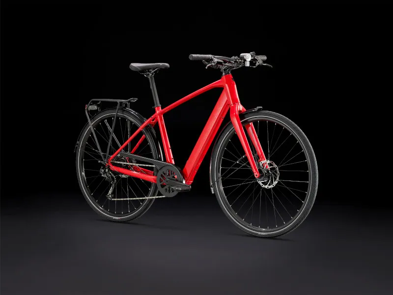 Lehký hliníkový rám a vidlice, patentovaný systém podpory šlapání Trek s motorem v náboji (250 W, 40 Nm), který poskytuje podporu až do rychlosti 25 km/h, a 250Wh baterie pro dojezd až 56 kilometrů na jedno nabití. Navíc rychlá kola 700c, rychlé a přitom stabilní pláště 40c s reflexními bočnicemi, spolehlivý 9rychlostní pohon Shimano, hydraulické kotoučové brzdy, integrovaná světla napájená z baterie, zadní nosič kompatibilní se systémem MIK, blatníky a stojánek.