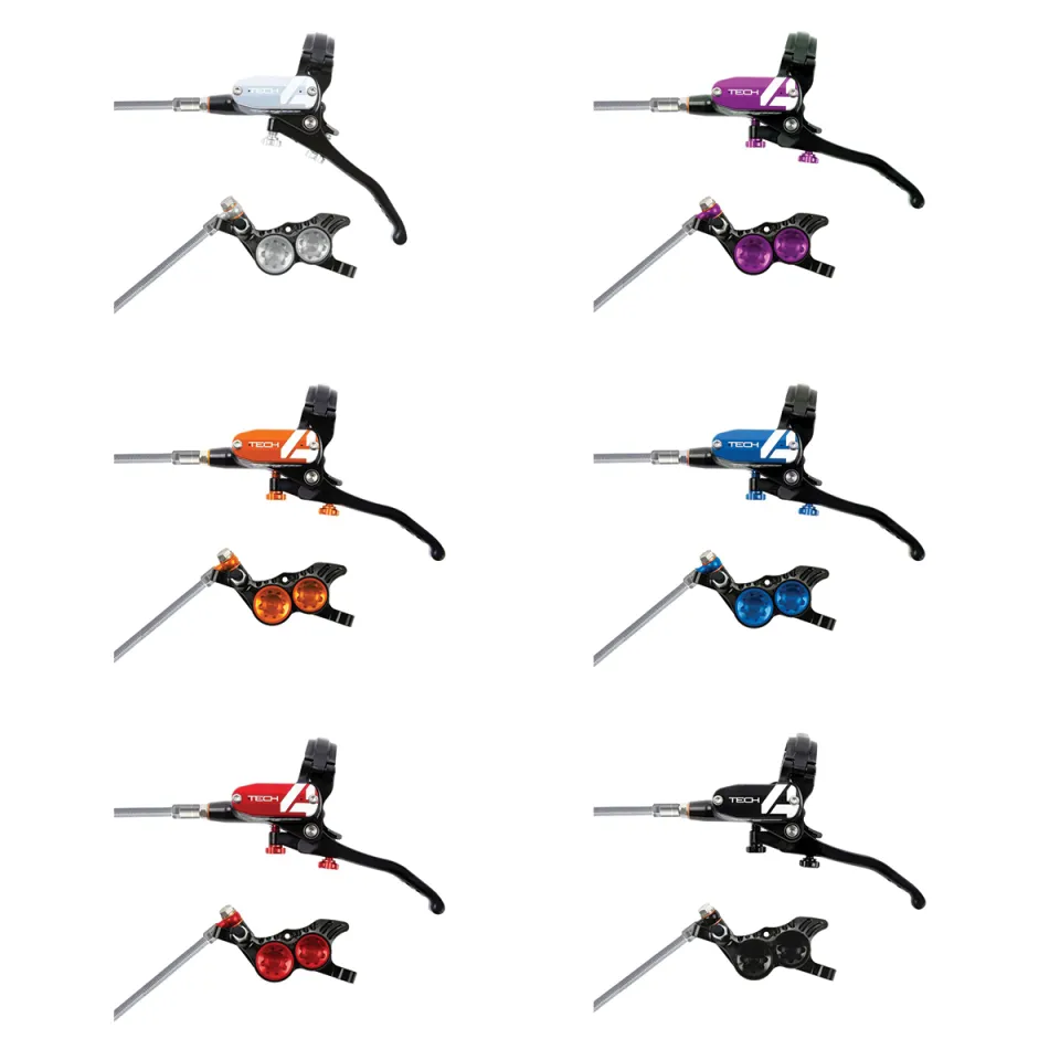 Tech4 V4 je špičková 4-pístková kotoučová brzda, navržená speciálně pro Downhill. Tato brzda je určena pro uchycení Post Mount a je vybavena inovativní Tech4 pákou, která umožňuje přesné nastavení vzdálenosti páky od řídítek i destiček od kotouče.