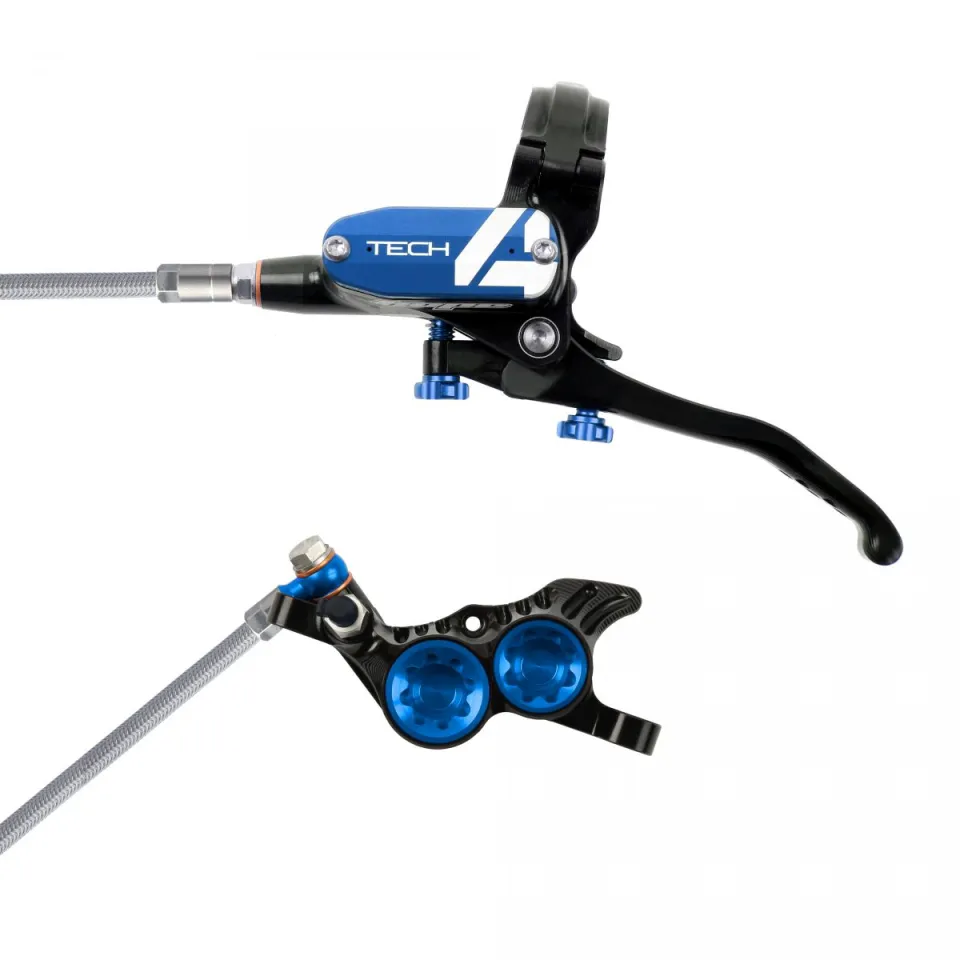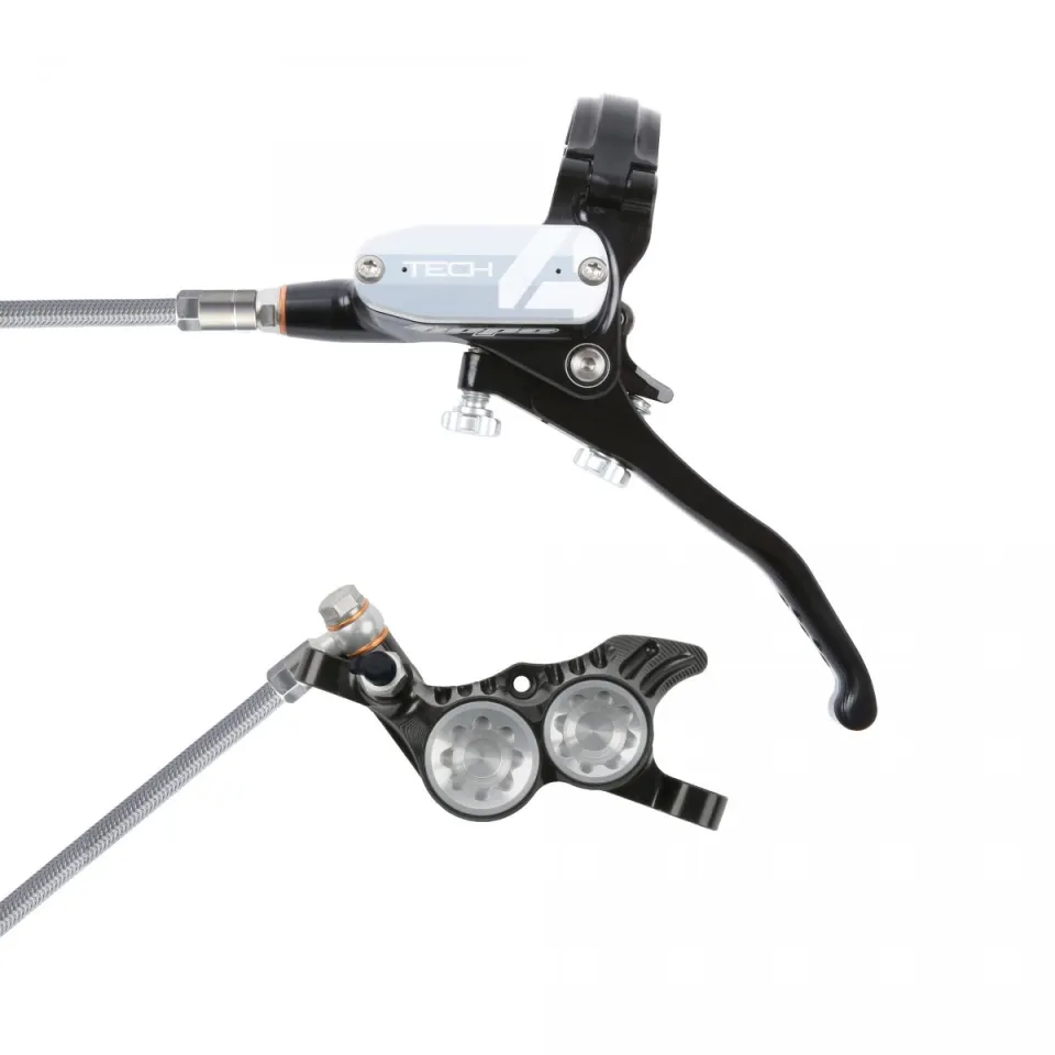 Tech4 V4 je špičková 4-pístková kotoučová brzda, navržená speciálně pro Downhill. Tato brzda je určena pro uchycení Post Mount a je vybavena inovativní Tech4 pákou, která umožňuje přesné nastavení vzdálenosti páky od řídítek i destiček od kotouče.