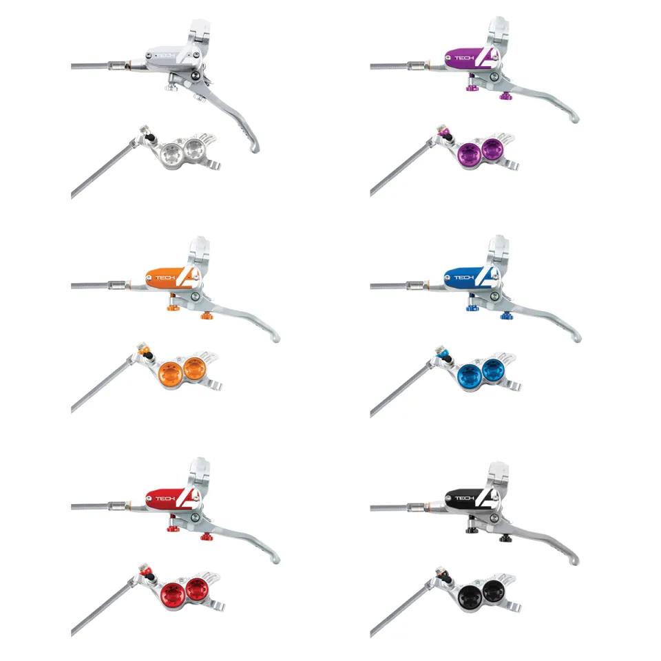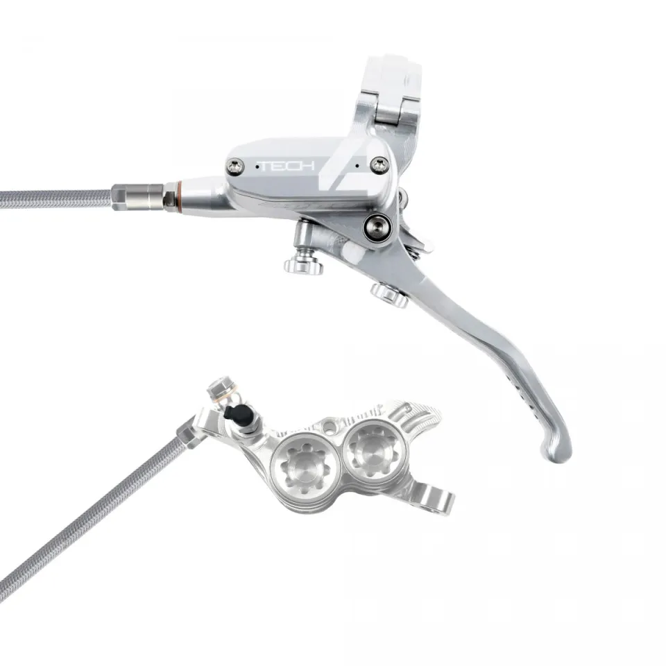 Tech4 V4 je špičková 4-pístková kotoučová brzda, navržená speciálně pro Downhill. Tato brzda je určena pro uchycení Post Mount a je vybavena inovativní Tech4 pákou, která umožňuje přesné nastavení vzdálenosti páky od řídítek i destiček od kotouče.