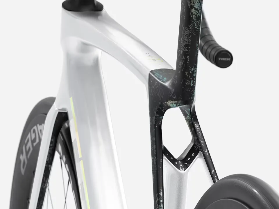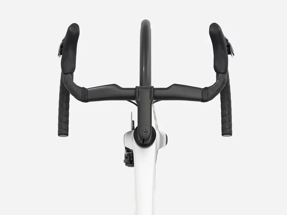 Madone Gen 8 je v pákách užší než v obloucích, takže lze rovnou za jízdy upravit pozici a maximalizovat aerodynamiku nebo výkon. Dvoudílný design umožňuje rychle a snadno vše vyladit.