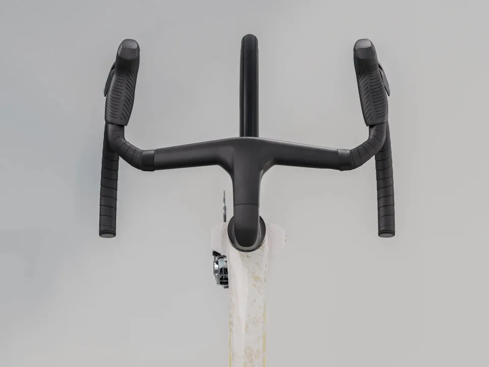 Trek Aero RSL, silniční řídítka s integrovaným představcem, karbon OCLV, Race Fit, dosah 80 mm, oblouk 124 mm, šířka mezi pákami 35 cm (XS), 37 cm (S), 39 cm (M, ML, L), 41 cm (XL), šířka mezi oblouky 38 cm (XS), 40 cm (S), 42 cm (M, ML, L), 44 cm (XL), délka představce 80 mm (XS), 90 mm (S, M), 100 mm (ML, L), 110 mm (XL)