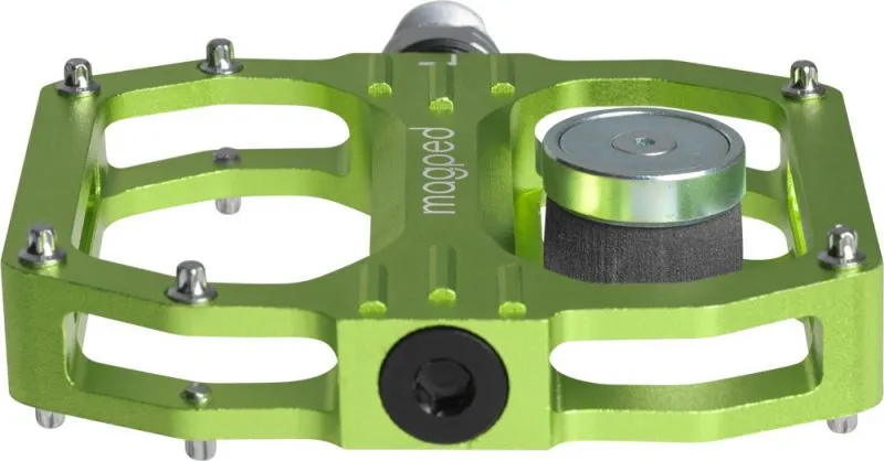Nízká hmotnost Maged je moderní, vysoce kvalitní plochý pedál vyrobený z lehkého CNC řezaného hliníku s vřetenem CrMo. Hmotnost včetně patentovaného magnetického systému je pouze 458 gramů (200N magnet) na pár.