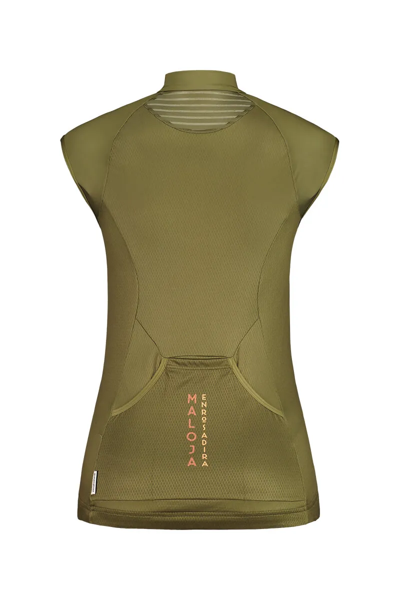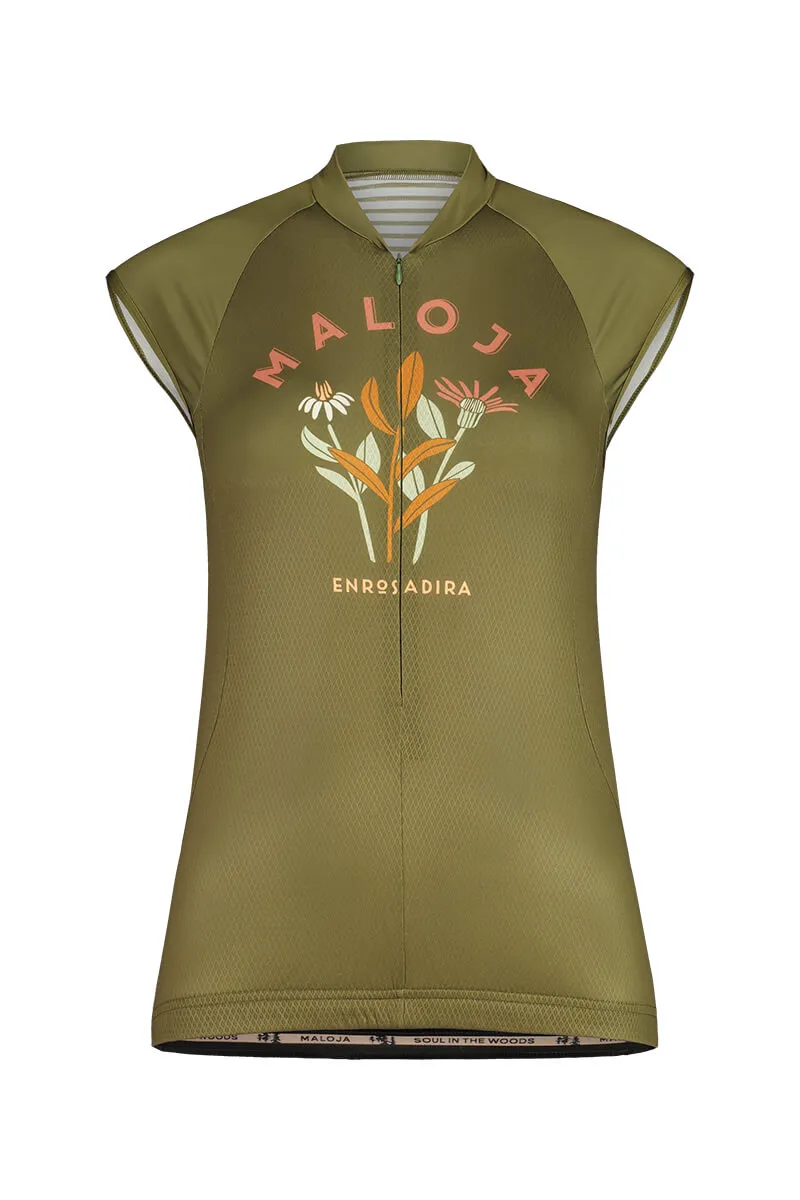 Vysoce prodyšný cyklistický dres užšího přiléhavého střihu bez rukávů od značky Maloja. Části z materiálu mesh na krku. Silikonový lem v pase jej při jízdě pevně drží na místě. Samozřejmostí jsou tři úložné kapsy na zadním díle. Čistý design zdobí letní motiv květin na hrudi.