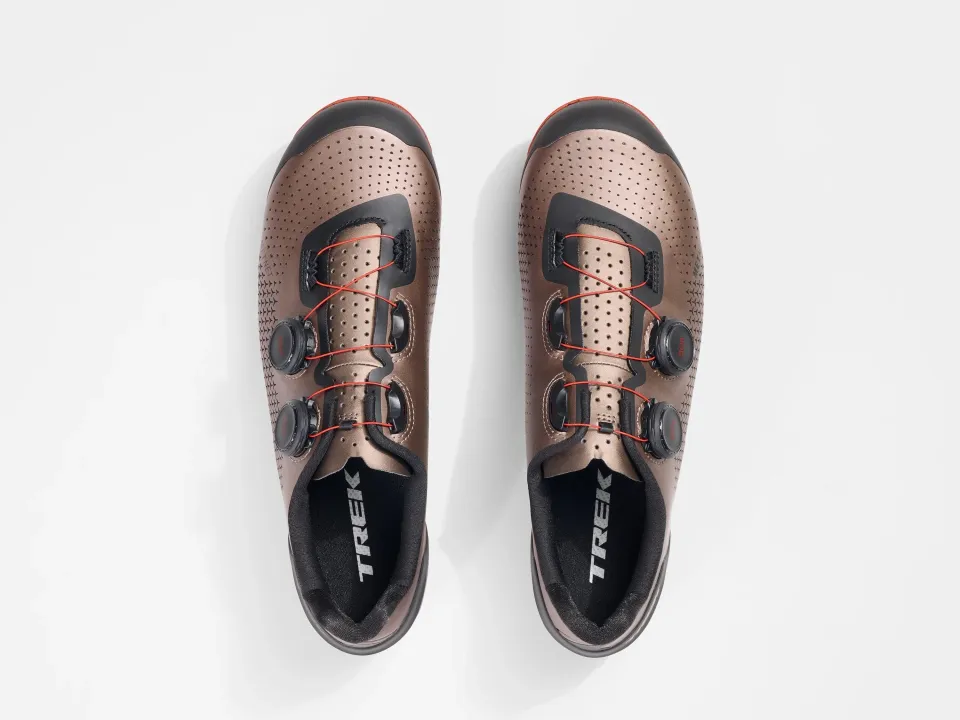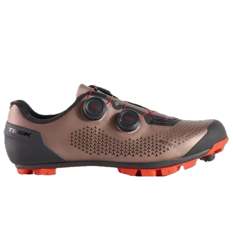 Podrobné údaje o výrobku 1) V ergonomicky tvarovaném provedení umožňuje model Trek Pro podávat ty nejlepší výkony. 2) Elastické odlehčovací zóny METNET se přizpůsobují noze a zabraňují běžným otlakům chodidla. 3) Kompozitní podrážka z karbonu OCLV a sklolaminátu zaručuje skvělý přenos síly. 4) Systém zapínání BOA umožňuje mikronastavení, takže tretry skvěle padnou pro dynamičtější a hbitější jízdu. 5) Externí ochrana na patě stabilizuje nohu a zvyšuje účinnost. 6) Tachyonová pryžová podrážka a odnímatelné hroty na špičce a patě zajišťují vynikající přilnavost na jakémkoli povrchu. 7) Odolná pogumovaná vrstva GnarGuard chrání proti oděru a jinému poškození na trailech. 8) Made with recycled materials - shoe upper is 33% recycled material by weight