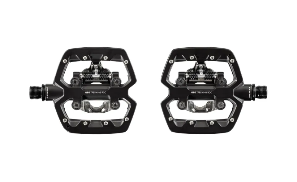 LOOK Geo Trekking Roc je robustní hliníkový pedál, který je na jedné straně plochý a na druhé straně kompatibilní s SPD, navržený pro každodenní cesty do práce, po městě nebo na cyklostezky. Robustní hliníkové složení podporuje vysokou odolnost v jakýchkoli podmínkách a hybridní konstrukce maximální všestrannost. Nášlapná strana je kompatibilní s SPD a má jednoduchý systém nastavení, který umožňuje nastavit napětí od 5 do 10. Pedál je dodáván s kufry EASY, které usnadňují záběr o 30 %.