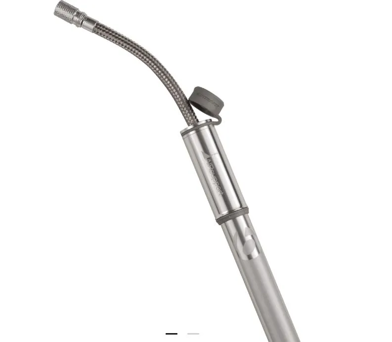 Vytáhněte skrytou hadičku pumpičky Air Support HP Pro a našroubujte na ventilek Presta. Zajistíte tak bezpečné huštění silničních plášťů. Tato špičková pumpička má tělo o menším objemu a umožňuje nahuštění plášťů až na 8,5 baru (120 psi). Vleze se do kapsičky dresu nebo ji lze pomocí přiloženého držáku namontovat pod košík na bidony.