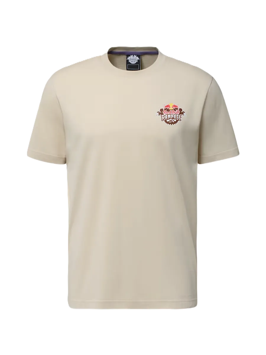 Připravte se na Red Bull Rampage, nejextrémnější big-mountain freeride MTB akci na světě, s tímto pohodlným a stylovým unisex trikem v béžové barvě. Triko kombinuje měkký bavlněný materiál s výrazným designem inspirovaným atmosférou závodu.
