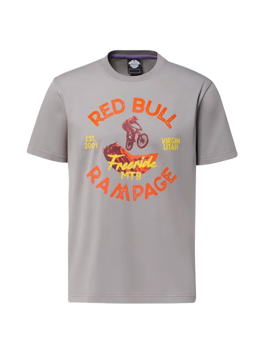 Na přední straně zdobí triko výrazný potisk Red Bull Rampage Freeride MTB, zatímco na zádech je decentně umístěno logo samotné akce. Díky materiálu ze 100% bavlny je příjemné na dotek, prodyšné a vhodné pro každodenní nošení.