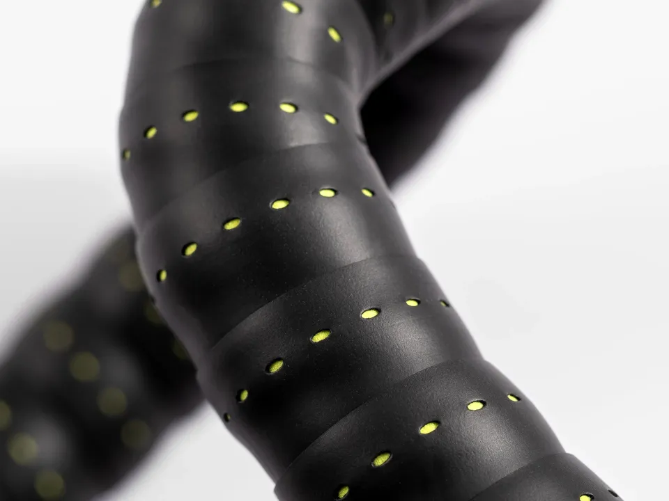 Podrobné údaje o výrobku - Mimořádně přilnavý povrch zabraňuje klouzání rukou. - Klasický perforovaný design dodává elegantní vzhled. - Skvělá pružnost umožňuje rychlou a snadnou montáž. - Pěna tlumicí vibrace zvyšuje pohodlí. - Součástí sady jsou koncové pásky a reflexní zátky Bontrager. - Přilnavá zadní strana usnadňuje instalaci. - Tenčí profil pro elegantní vzhled.