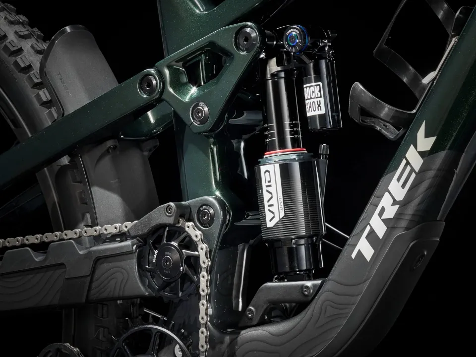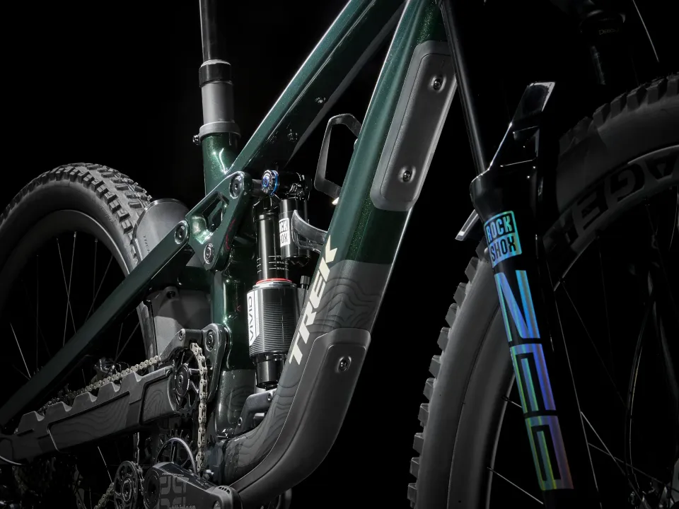 Proč si kolo zamiluješ 1) Odpružení s vysoko umístěným čepem umožní podivuhodně jisté ovládání kola i v děsivých sjezdových pasážích. Pečlivě vyladěný anti-squat se v kombinaci s velkými kladkami postará o výjimečnou efektivitu šlapání. 2) Velký zdvih 170 mm vpředu i vzadu si hravě poradí s obrovskými skoky i kamenitými úseky. 3) V hlavovém složení je také uloženo nářadí Bontrager BITS, které tak máš vždy po ruce pro rychlé opravy v terénu. 4) V základní výbavě je rychlé 29palcové kolo vpředu a tuhé, ale i přesto hbité 27,5palcové kolo vzadu. Pokud ti záleží hlavně na rychlosti, můžeš si dát 29palcové kolo i dozadu. 5) Nastavení kola lze upravit podle stylu jízdy a typu ježdění. Pracovat lze se systémem Mino Link, pákovým poměrem a v případě zájmu i se sklonem hlavového složení (potřebné díly se prodávají zvlášť). Funkce Vnitřní úložný prostor Díky vnitřnímu úložnému prostoru nepotřebuješ brašničku. Můžeš v něm totiž převážet všechny nezbytnosti pro jízdu. Active Braking Pivot Systém Active Braking Pivot umožňuje našim technikům seřídit tlumení tak, aby reagovalo na zrychlení a brzdění nezávisle. Výsledkem je spolehlivá ovladatelnost. Komplexní ochrana rámu Vyměnitelné chrániče dolní trubky chrání spodní stranu rámu před kameny, nárazy, nečistotami a při transportu a ty se můžeš plně soustředit jen na jízdu. Karbon OCLV Mountain Carbon Toto speciální karbonové vlákno určené pro horská kola Trek je nesmírně tuhé. Vyznačuje se unikátním složením materiálů a postupy vrstvení, jakož i pokročilými výrobními postupy značky Trek a přísnějším testováním.