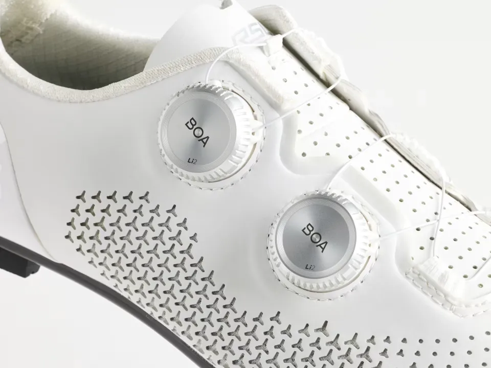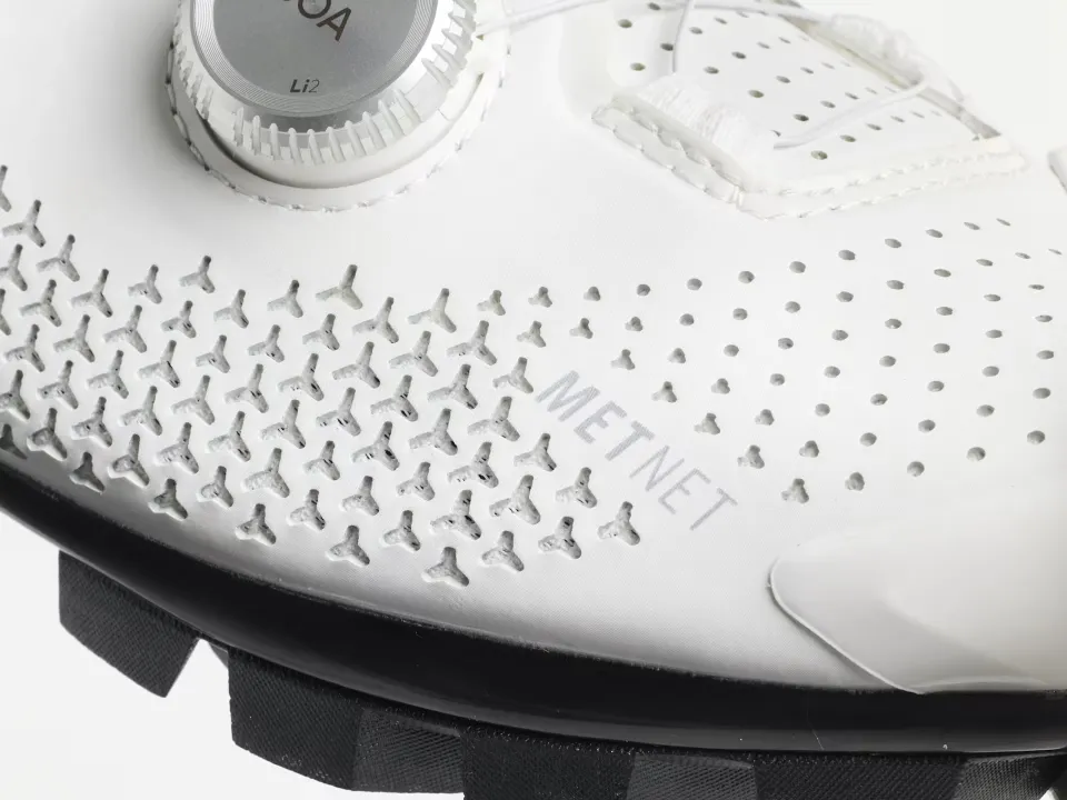 Mají nejtužší a nejlehčí podrážku 100% z karbonu OCLV k využití každičkého wattu. Systém zapínání BOA s dvěma kolečky Li2 a odlehčovacími zónami METNET pohodlně ukotví nohu pro jedinečnou účinnost. Mají závodní tachyonovou podrážku a odnímatelné hroty na špičce a patě pro maximální trakci mimo sedlo.