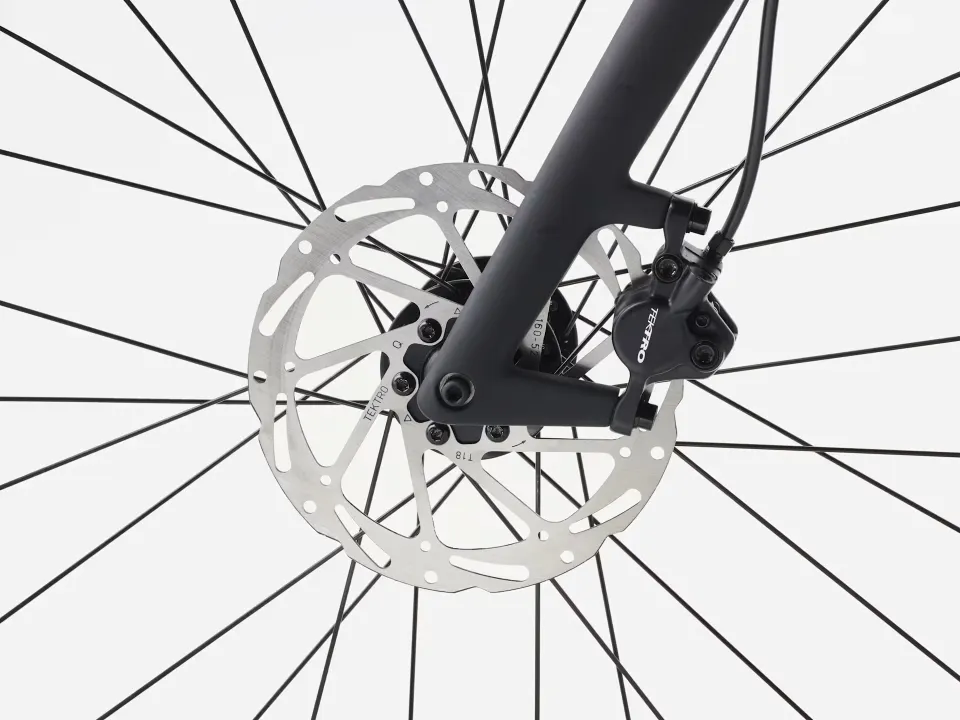 Lehká a odolná karbonová vidlice se snadno ovládá, dokáže skvěle vyhlazovat nerovnosti i na velmi rozbitém povrchu a je vybavena předním blatníkem, který dává jasně najevo, že se jedná o pravé a nefalšované horské kolo.
