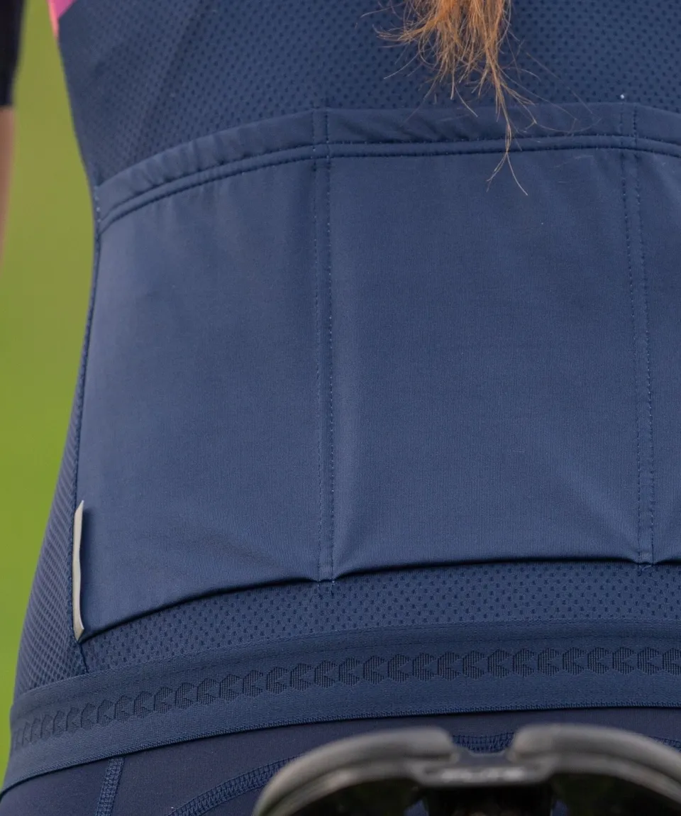 HLAVNÍ VÝHODY - Vysoce funkční materiál Spinn. - Rukávy se skrytým elastickým zakončením snižují odpor vzduchu. - Trojdílná kapsa na zadním dílu. - Překrytý dlouhý zip. - Spodní okraj dresu zakončený gumou se silikonovým proužkem zabraňující posunu. - Odepínací a voděodolný sáček na cennosti.